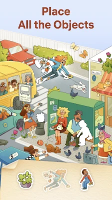 Simple rules and intuitive gameplay. Select the object you want to place in the picture, find its hidden spot and place it.