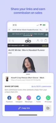 CREATE shoppable SmartLinks easily in the app, on desktop, or via web-browser extension. Share with your friends and followers to earn commission on sales.