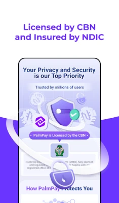 PalmPay is an intuitive financial app with account opening, money transfer, and bill payments in one. PalmPay is worthy of your trust based on its safety and reliability. And it is fully licensed and regulated as a Mobile Money Operator by the Central Bank of Nigeria, insured by the NDIC, and trusted by millions of users.